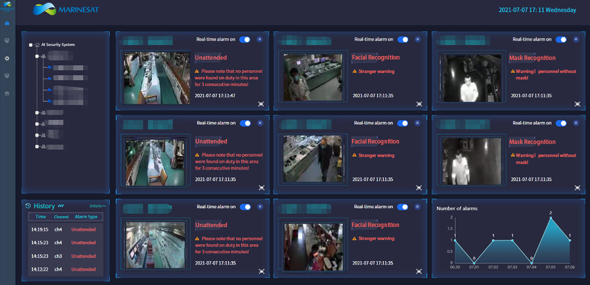 基于远程视频监控系统,Marinesat开发了新一代AI船舶管理系统,通过面部识别和行为分析在船舶管理,机组人员的工作安全和反盗版检测方面提供了极大的帮助。
